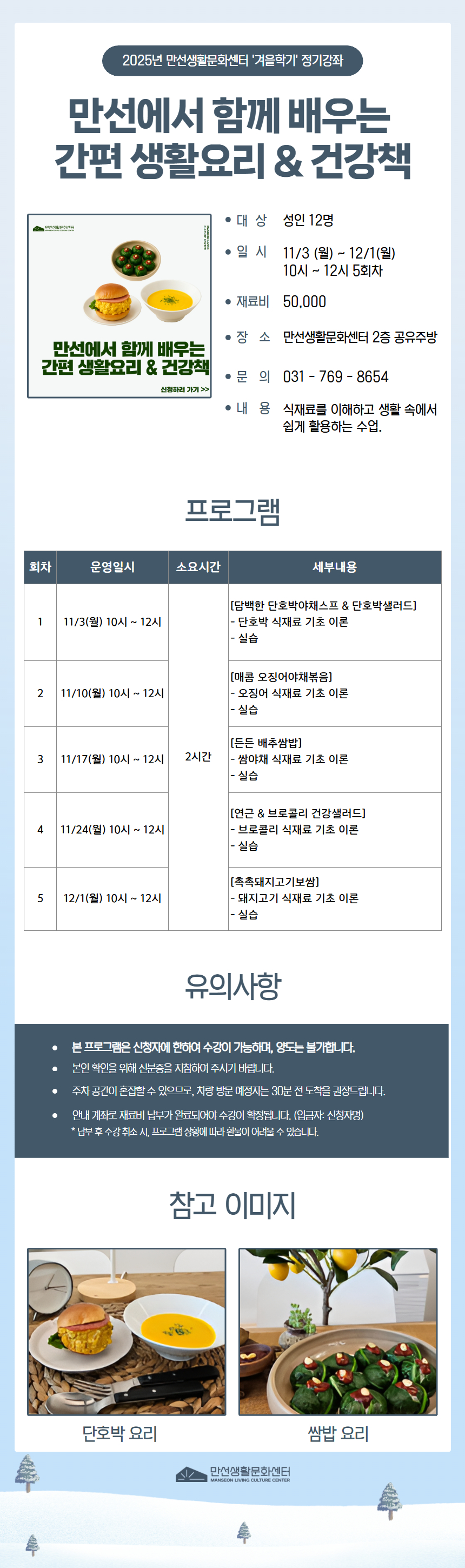 [정기강좌]만선에서 함께 배우는 간편 생활요리&건강식