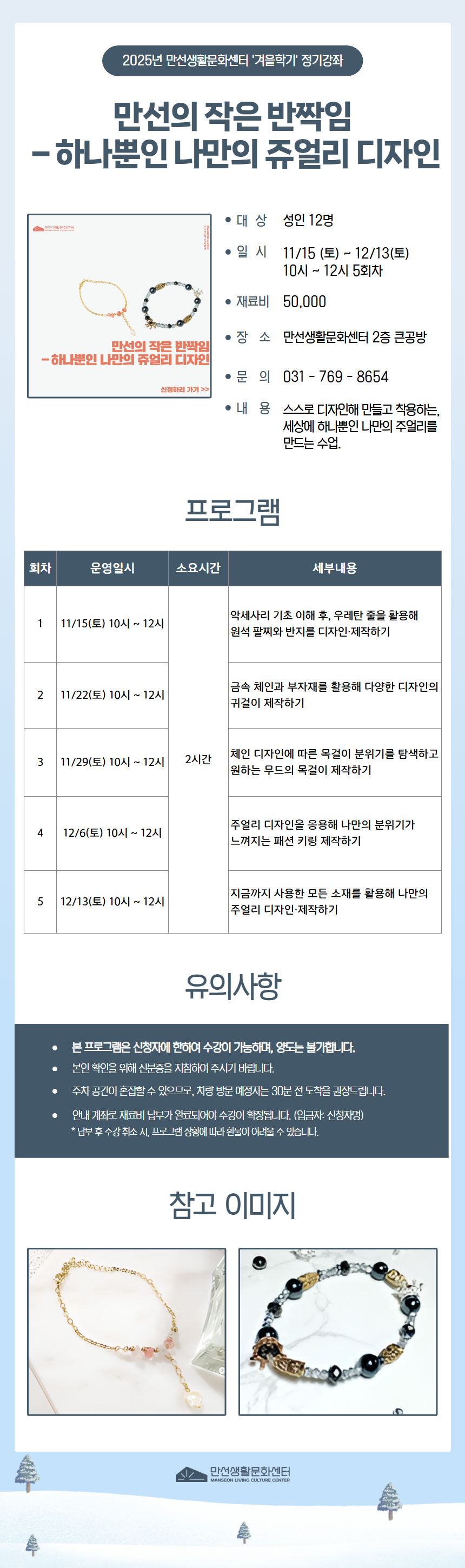 [정기강좌]만선의 작은 반짝임 - 하나뿐인 나만의 쥬얼리 디자인