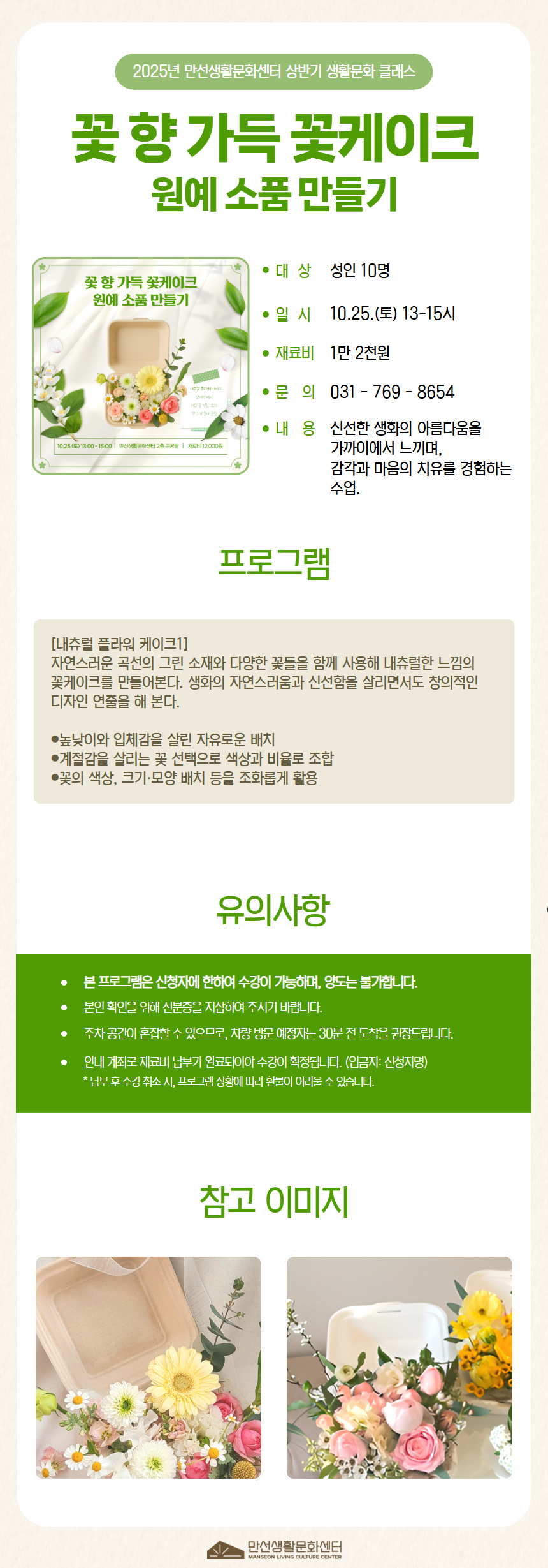 [원데이클래스]만선향을 찾아서 - 꽃 향 가득 꽃케이크 원예 소품 만들기(토요일13시)