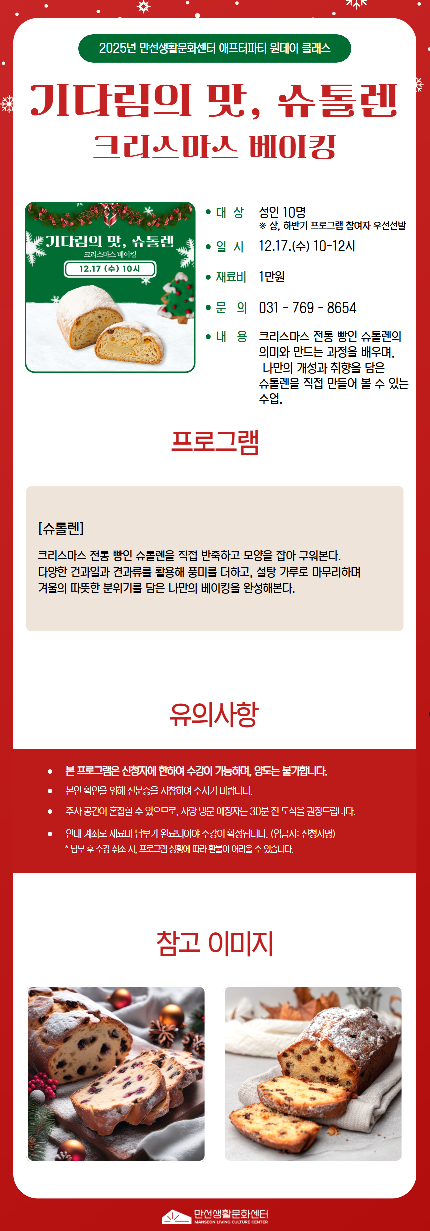 [원데이클래스]애프터파티-기다림의 맛, 슈톨렌 : 크리스마스 베이킹(수요일10시)