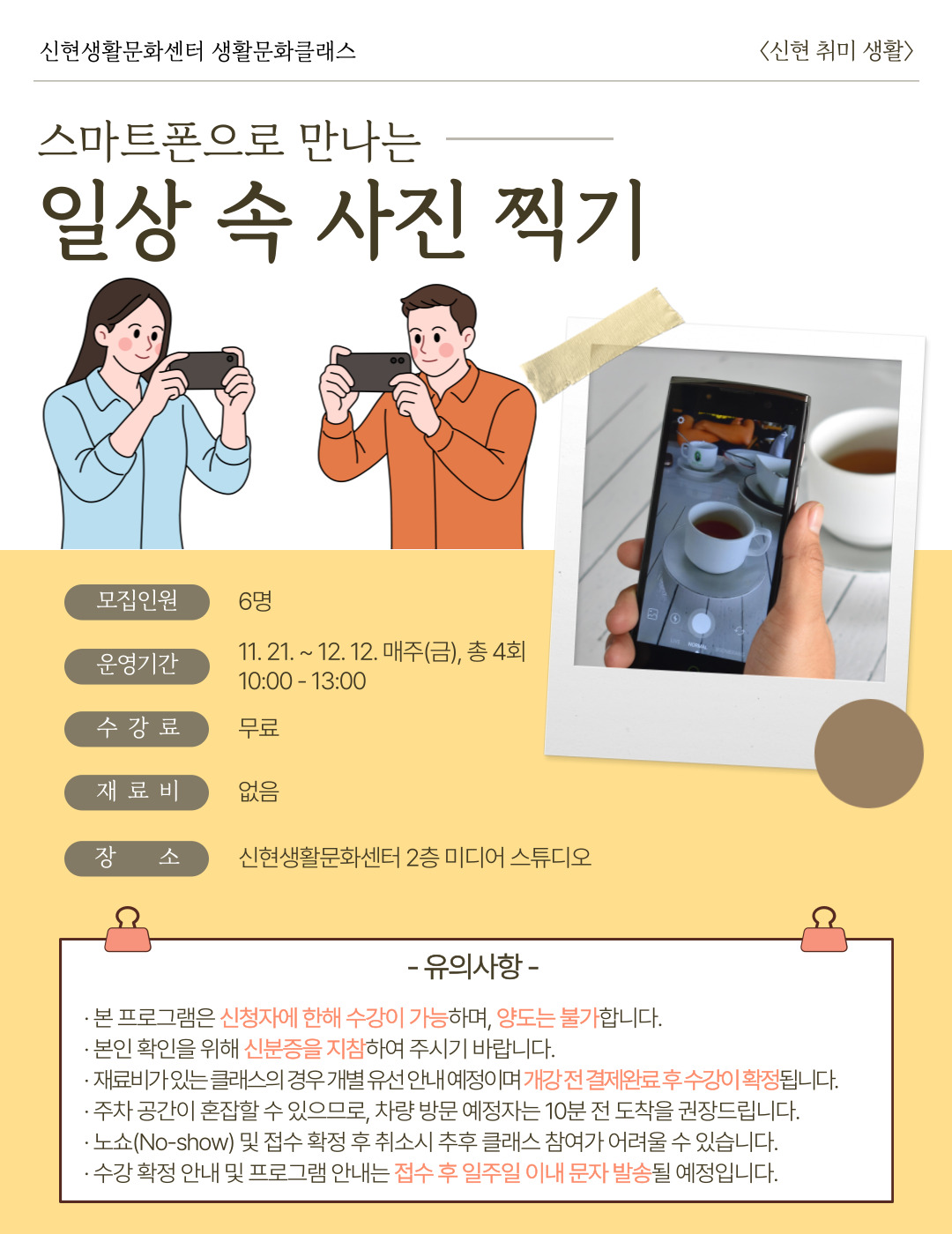 {seq=183, application_title=「신현 취미 생활」- 스마트폰으로 만나는 <일상 속 사진 찍기>, division_code=S, area_code=S, program_group_type=S-85, content=