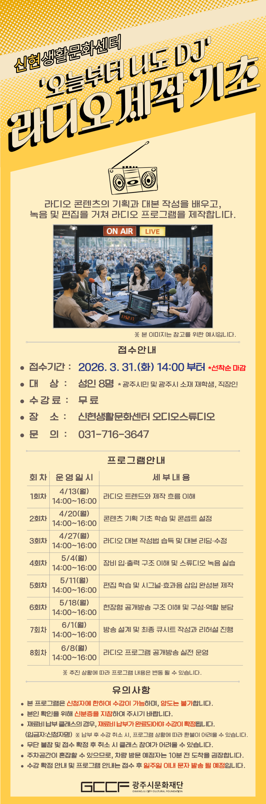 광주시민(거주자, 재직자, 학생) *선착순 마감/중복신청불가