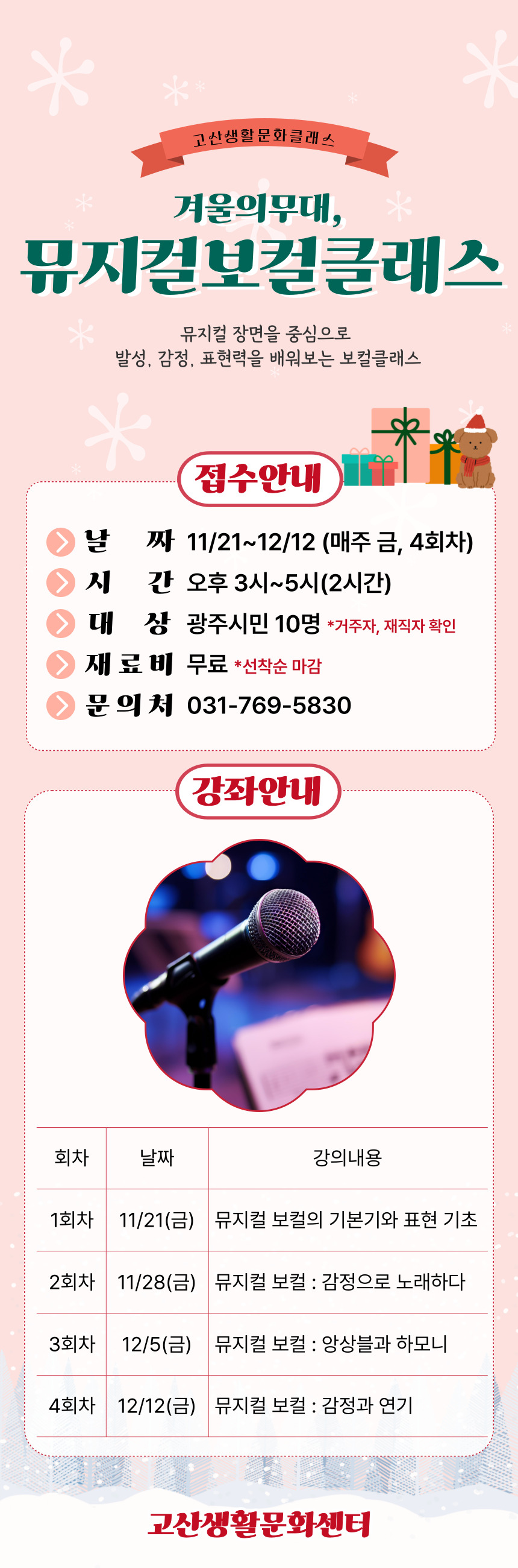 「고산, 겨울을 짓다」- 겨울의 무대, 뮤지컬 보컬 클래스