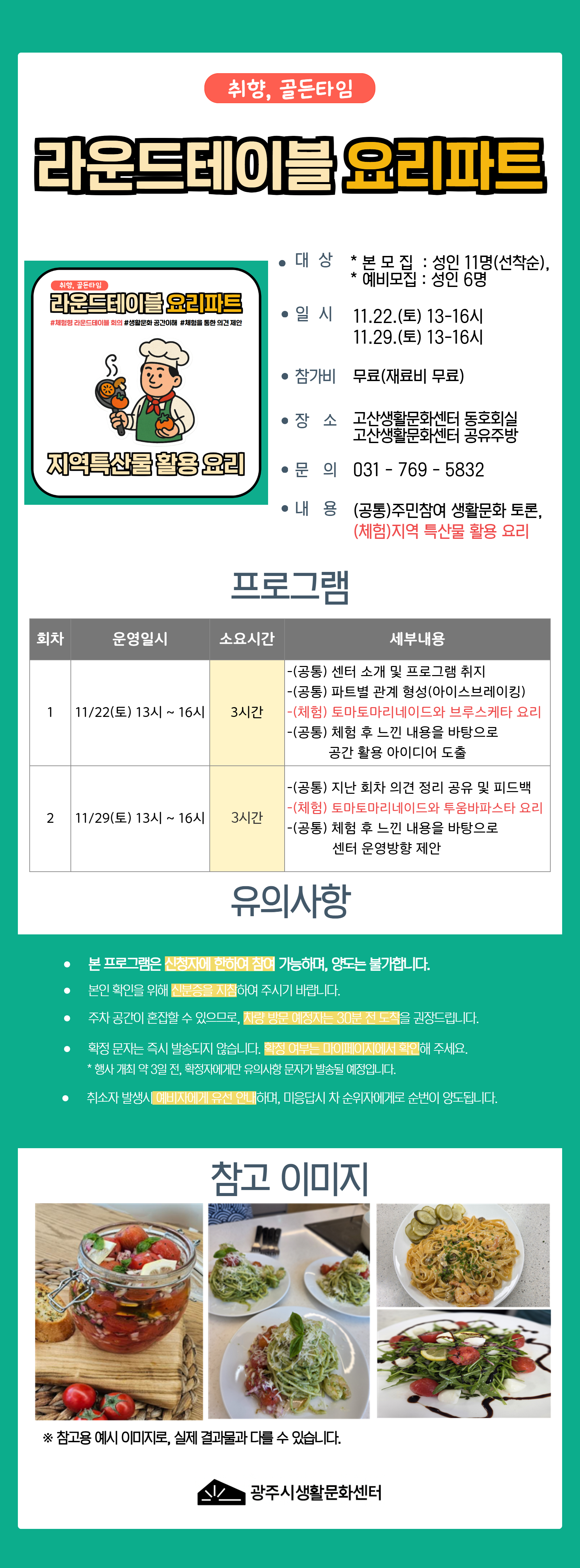 [체험형 라운드테이블 워크숍]<취향,골든타임:요리파트>지역특산물 활용 요리